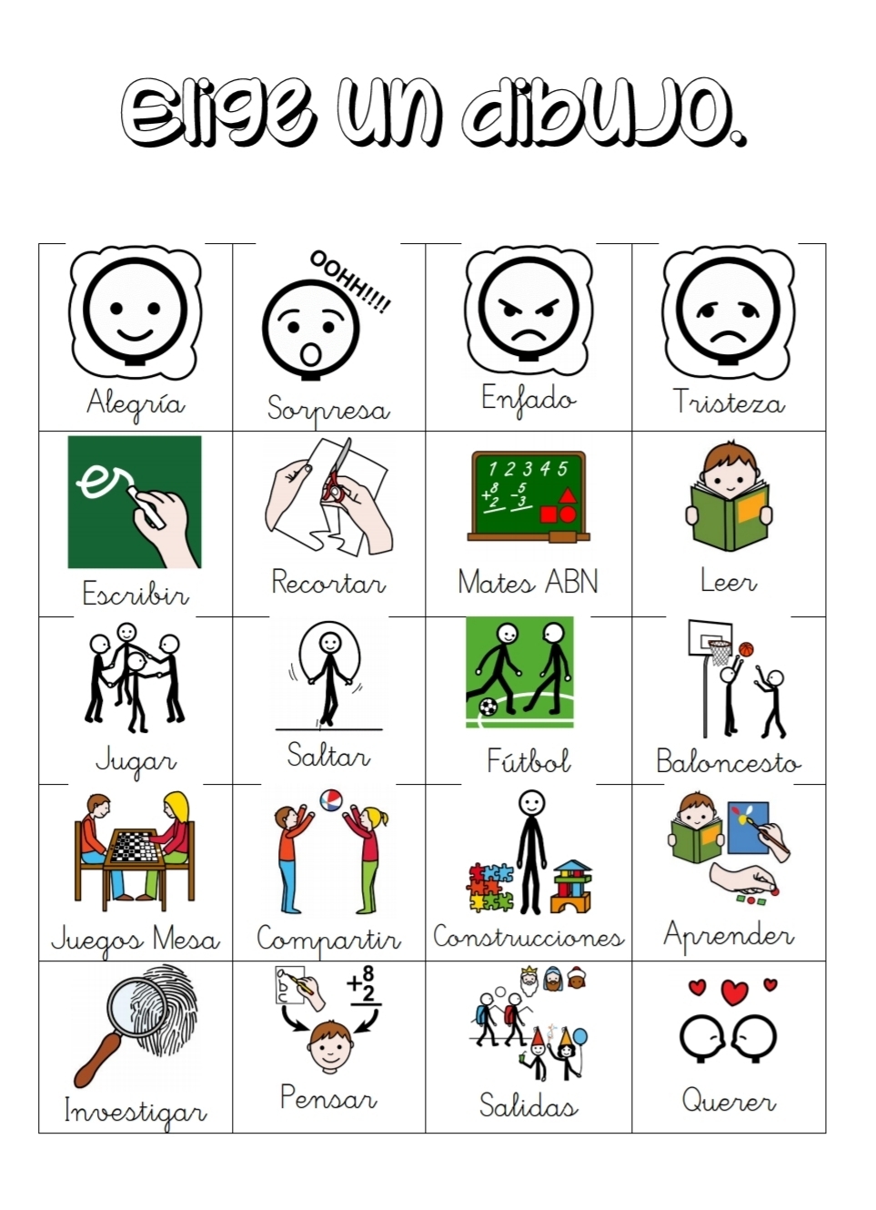 Pictogramas para actividad Mochila