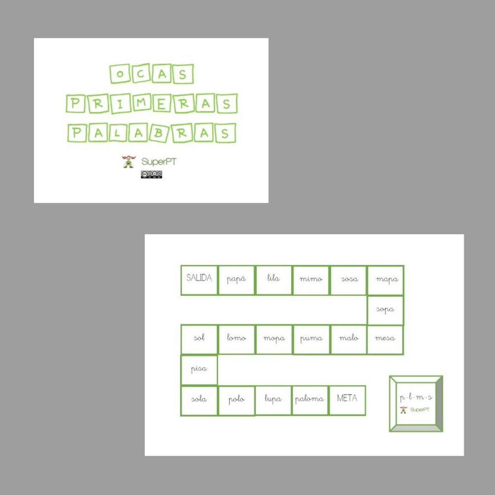 Una vez trabajados los anteriores juegos, cada 4 fonemas podemos practicar con esta OCA. El alumno tira el dado y va leyendo las palabras sencillas que le salen hasta llegar a meta. Hay un total de 6 ocas. Este juego va en un PACK, junto al "Lanzamiento de dado" y "Bingos".